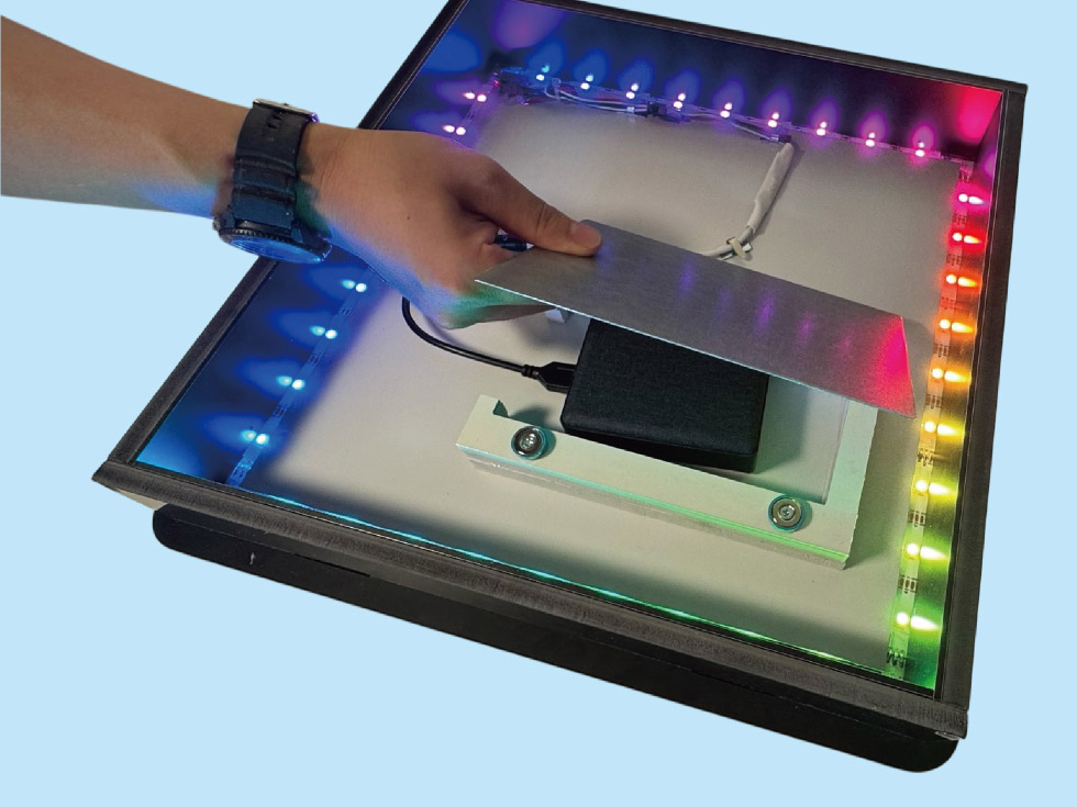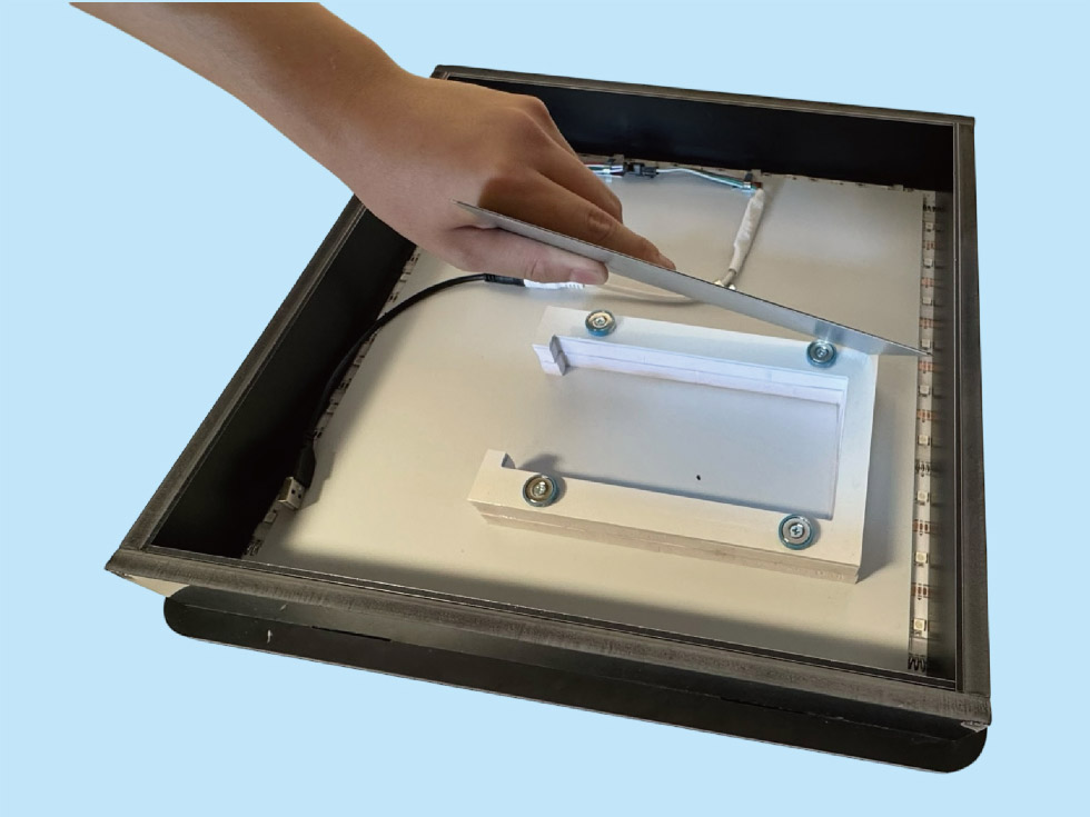 アクリル底面にミラーシートが貼ってあり、LEDの光を反射します。
