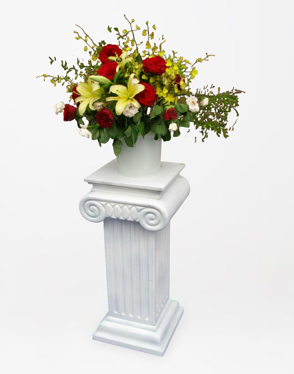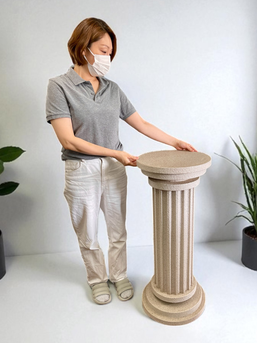 ヨーロッパ建築、ローマ・ギリシャ神殿風の石柱をお手軽にホール装飾として導入出来る、発泡スチロール製のオブジェです。造形用スチロールに高粘度の石目塗料を塗装してあるので見た目も質感も本物のギリシャ柱の重厚感があり発泡スチロールで製作したオブジェとは思えないクオリティです。
