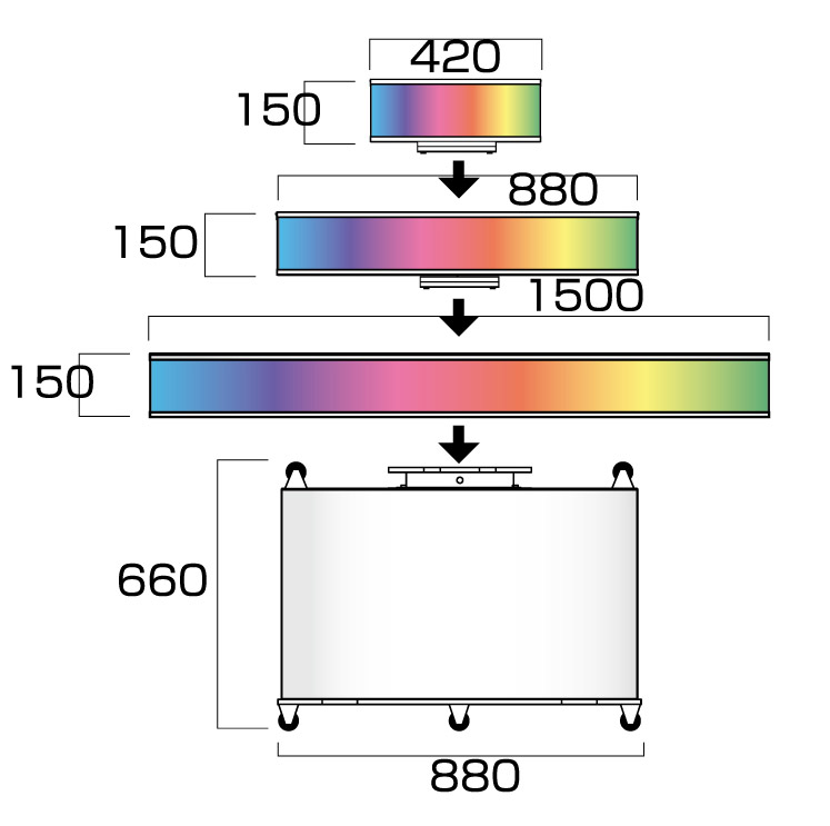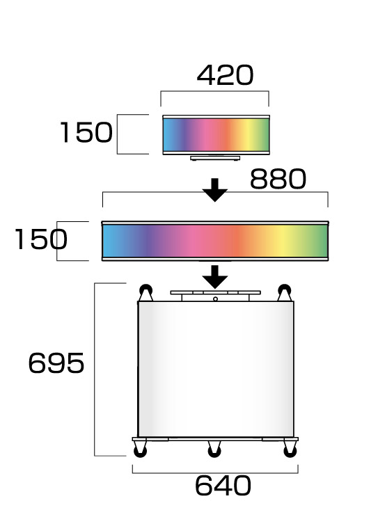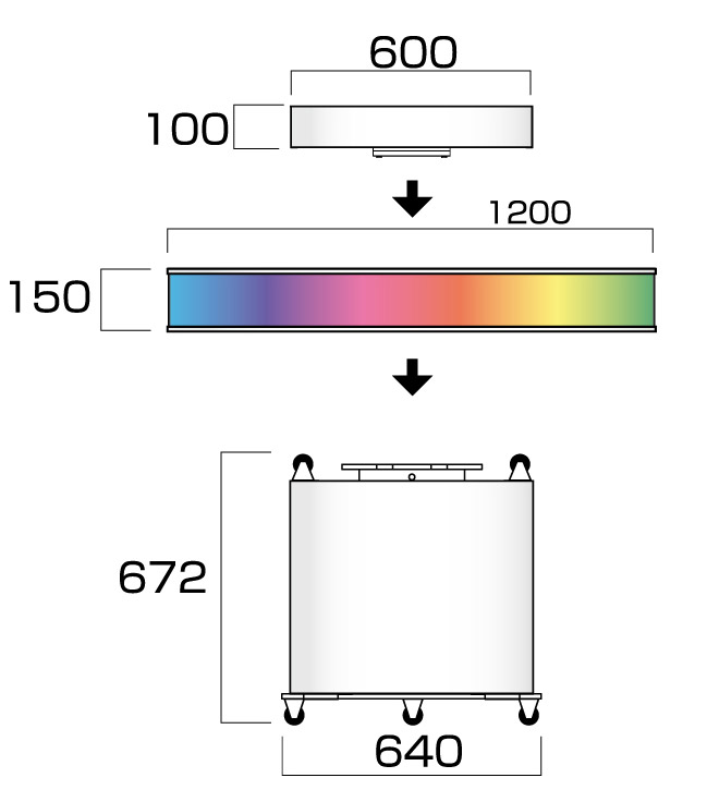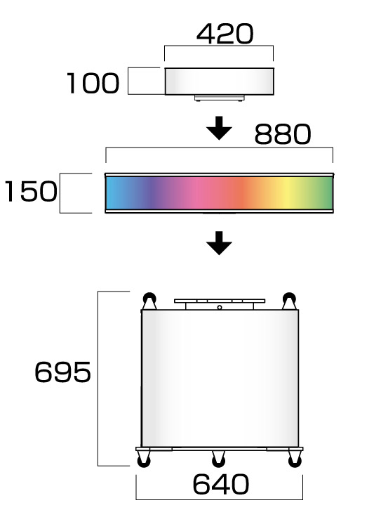キレイに輝く側面のレインボーLED+4種類のサイズから選べる新改良の回転台『レインボーサークル ユニット』が新登場!
