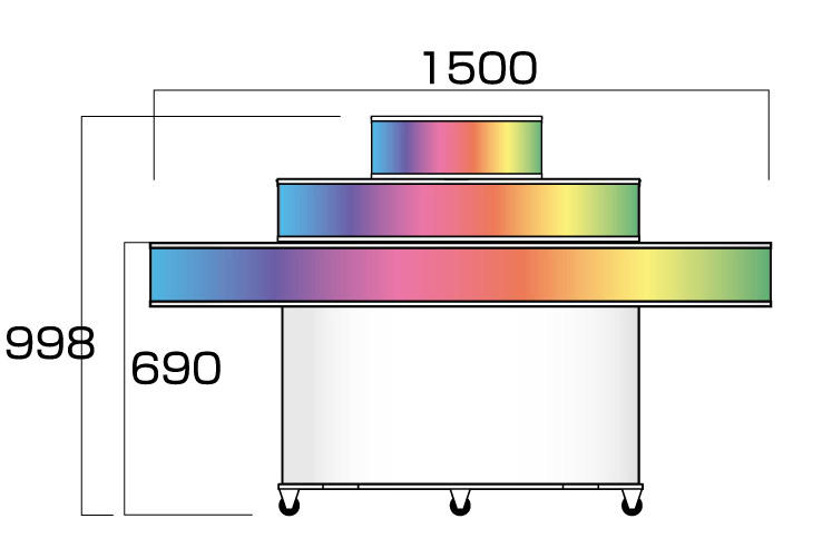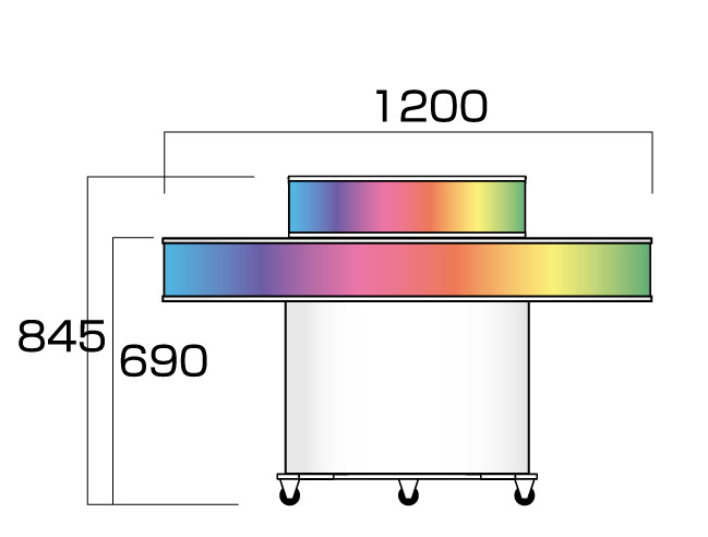 『レインボーサークル ユニットDX』は、全ての段にレインボーに光るテーブルを装備!